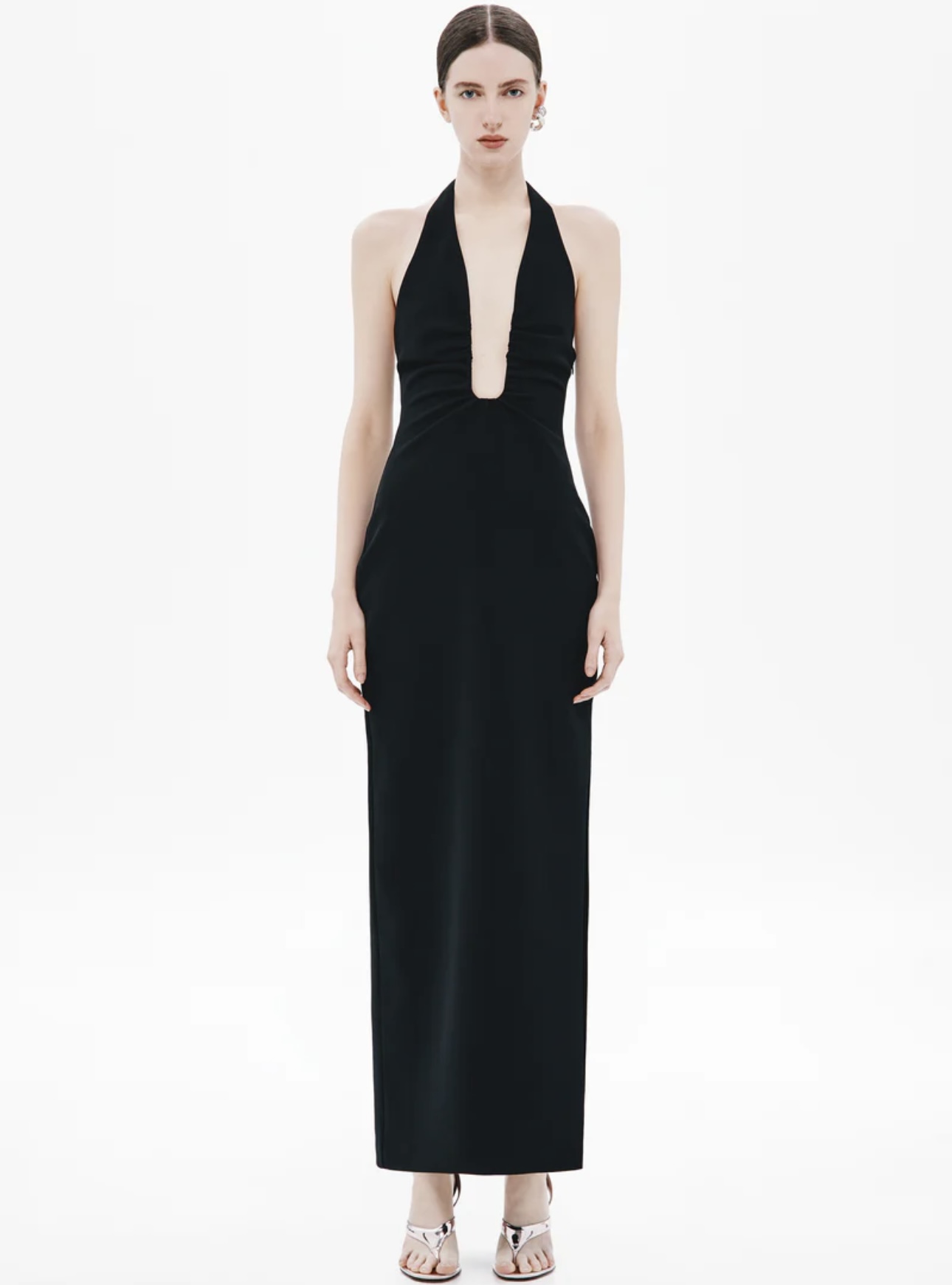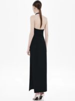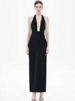 The ‘Alusia’ Stretch Twill Maxi Dress in Black, minimalistic in design.
