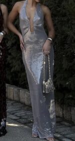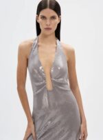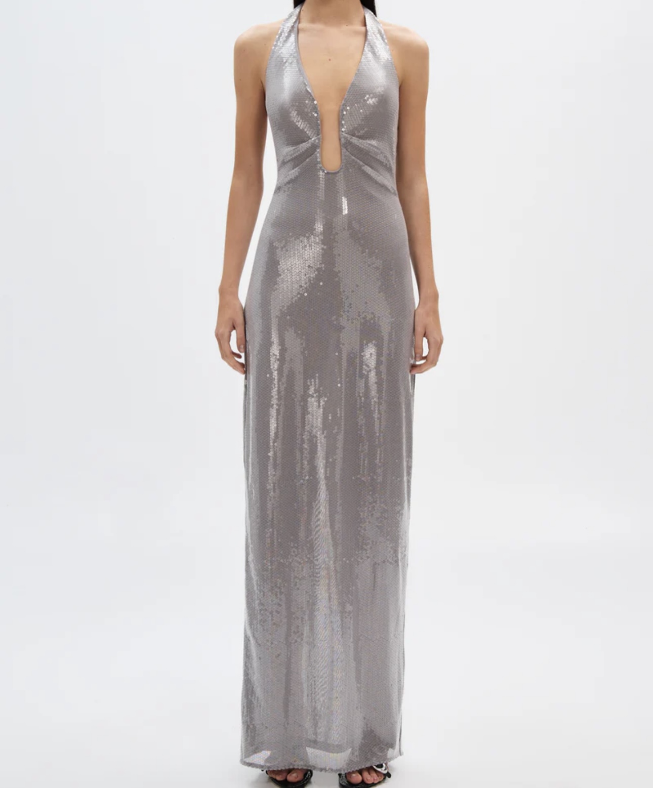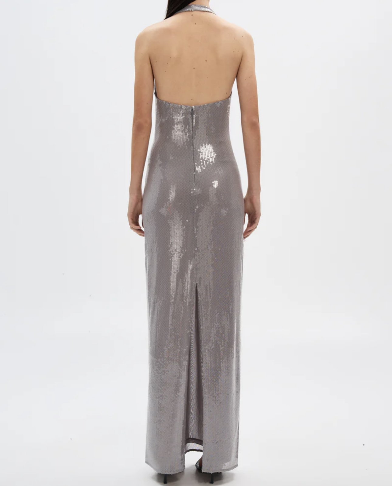 The ‘Alusia’ Sequin Maxi Dress in Pewter.