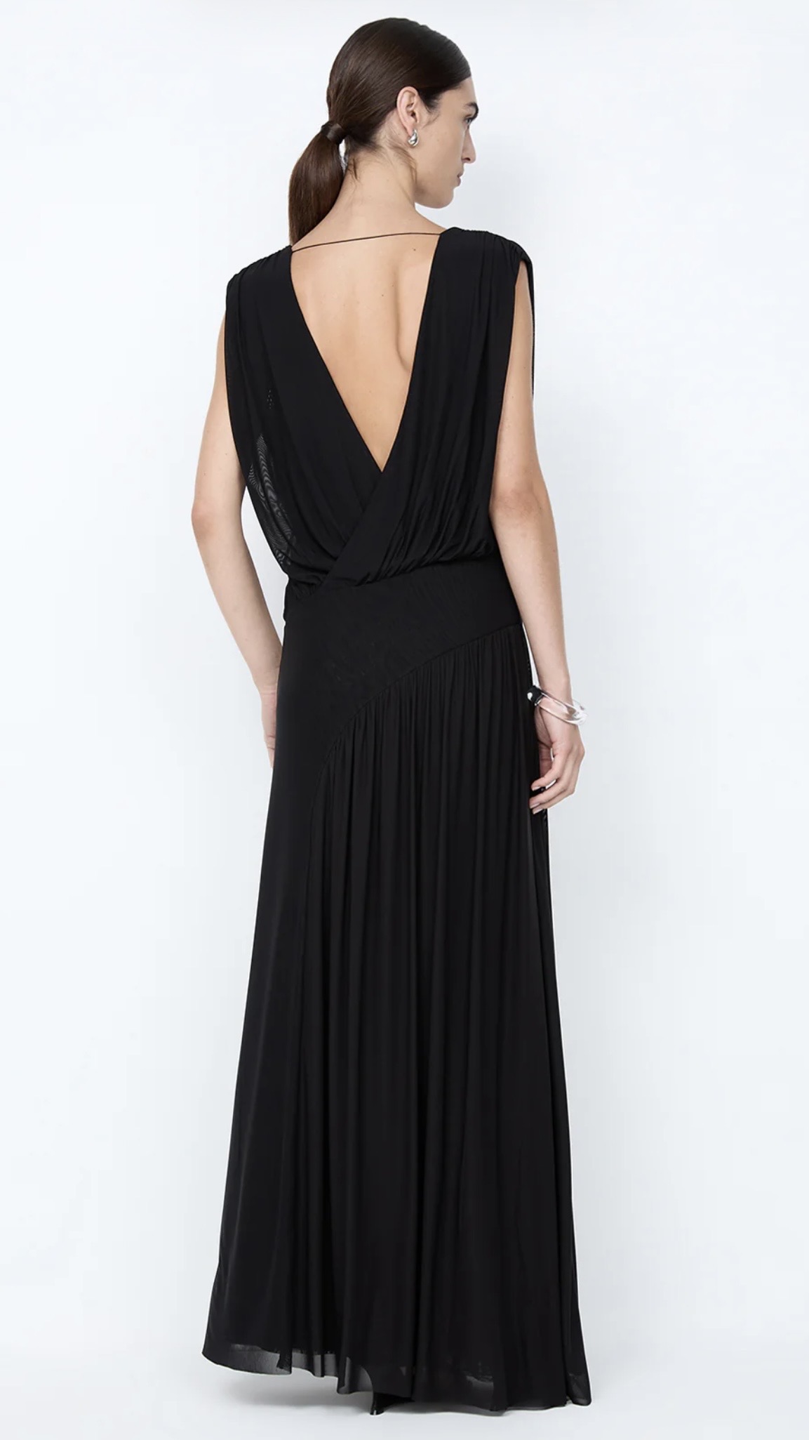 Falling into a gathered maxi dress