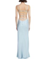 – Open back with straps that flatter the silhouette