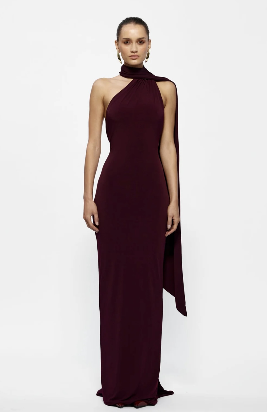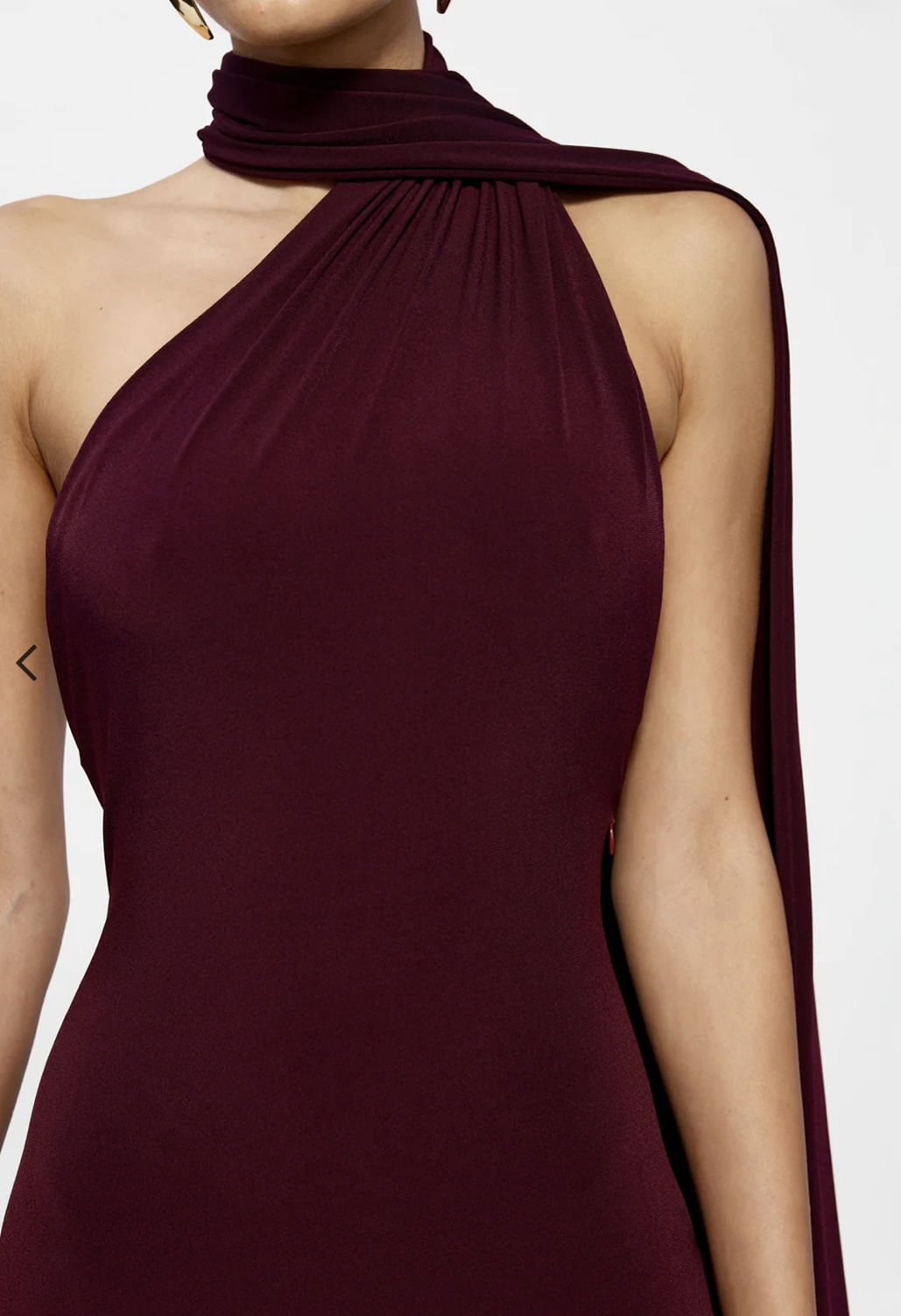 A striking blend of detailed design and timeless elegance, we welcome the Haven Dress. Crafted from our classic stretch jersey that softly drapes and cinches the figure. Detailed with an asymmetrical halter neckline that seamlessly cascades into a ruched waist. The Haven is beautifully balanced with a alluring open back and a train detailing. Made for those who desire quiet and understated luxury, the Haven is a perfect expression of feminine beauty and modern elegance.