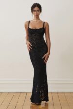 Step out in grace with Margot. Made from vintage-inspired lace with scalloped edges, she is the perfect balance between classic evening glamour and seductive allure. Designed to compliment the curves of your hips, before falling into a floor length maxi with a centre back split. With comfort at core, adjust her using the gold fastenings on the shoulder straps. Complete with a semi-sweetheart neckline and lined at the bust for coverage and support. A timeless look that is elegantly sheer in finish, Margot will make you the belle of the ball.