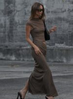 Milo Mesh Maxi Dress in Mushroom