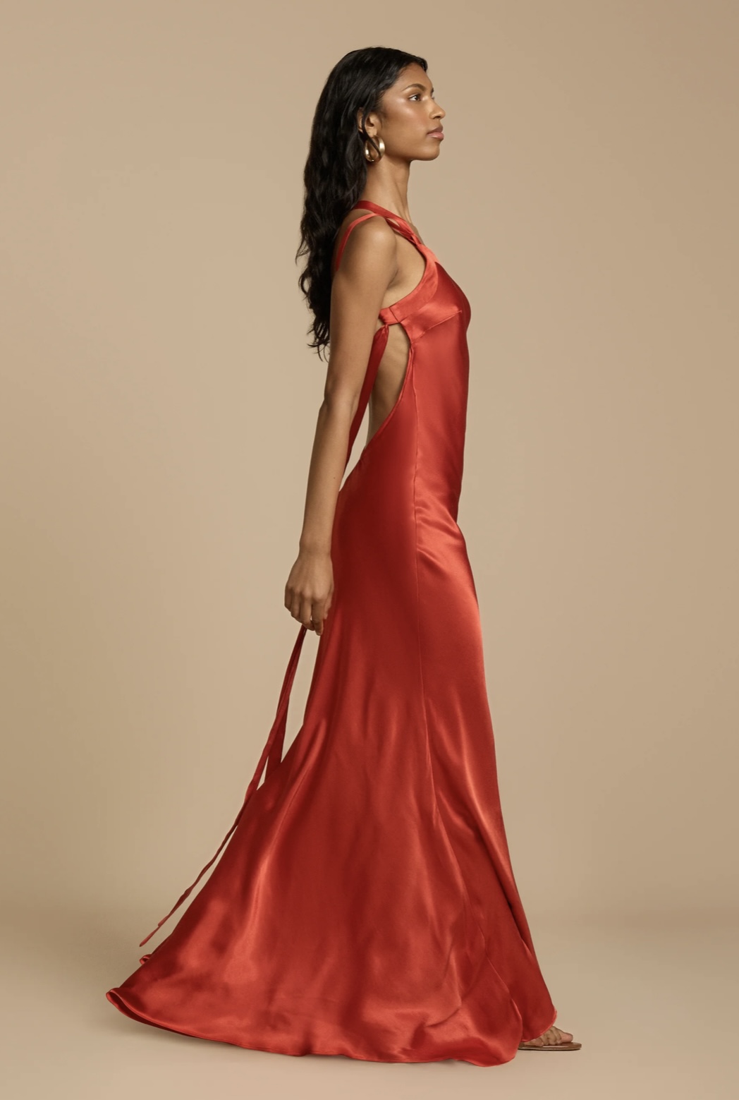 Elevate your presence with Monique, a mesmerising floor-length gown designed for modern elegance. Crafted in a vibrant rust red cut on the bias, Monique is made to accentuate your curves and ignite the senses. She features an asymmetrical one-shoulder design with a striking open back. Finely finished with crossover detailing and sculpted to embrace the feminine form. Her strap flows gracefully over the back, securing at the side hip. Crafted from a high quality Viscose offering comfortability and sophistication. Monique’s elegant design will take you from sunset to a moonlit soiree.