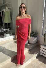Day based pricing : Nico Off Shoulder Maxi Dress in Watermelon Size 6