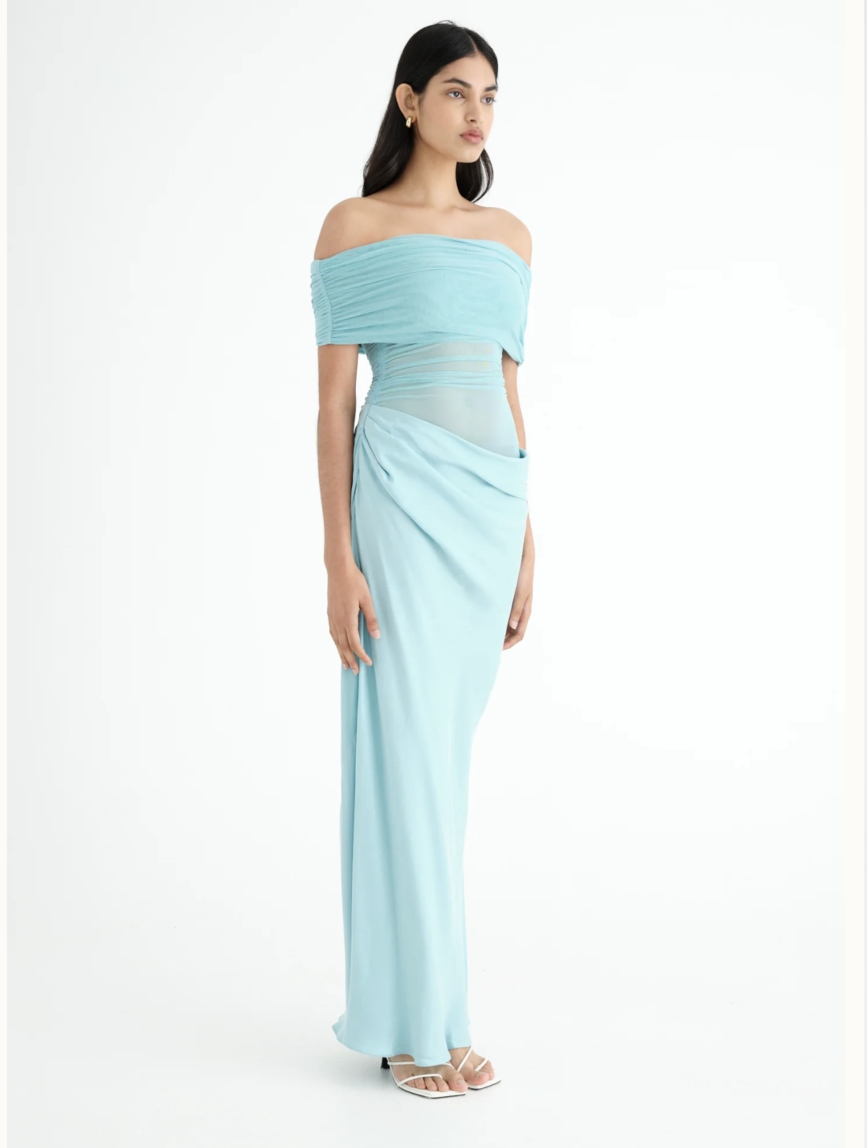 Nico Off Shoulder Maxi Dress in Aquamarine