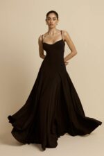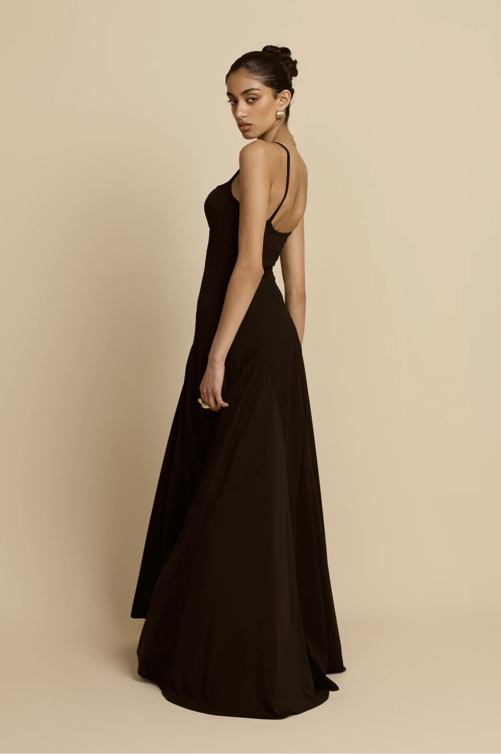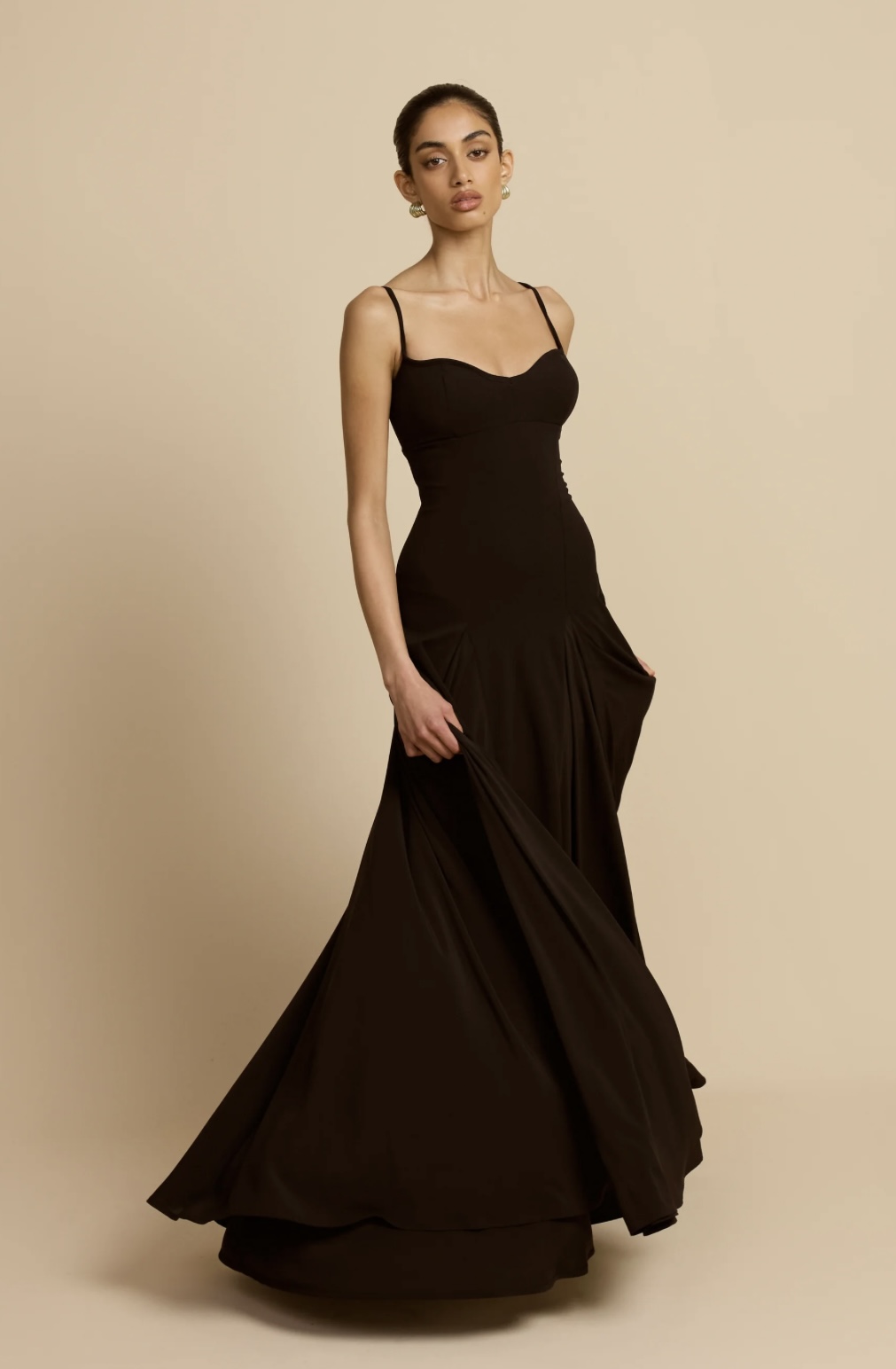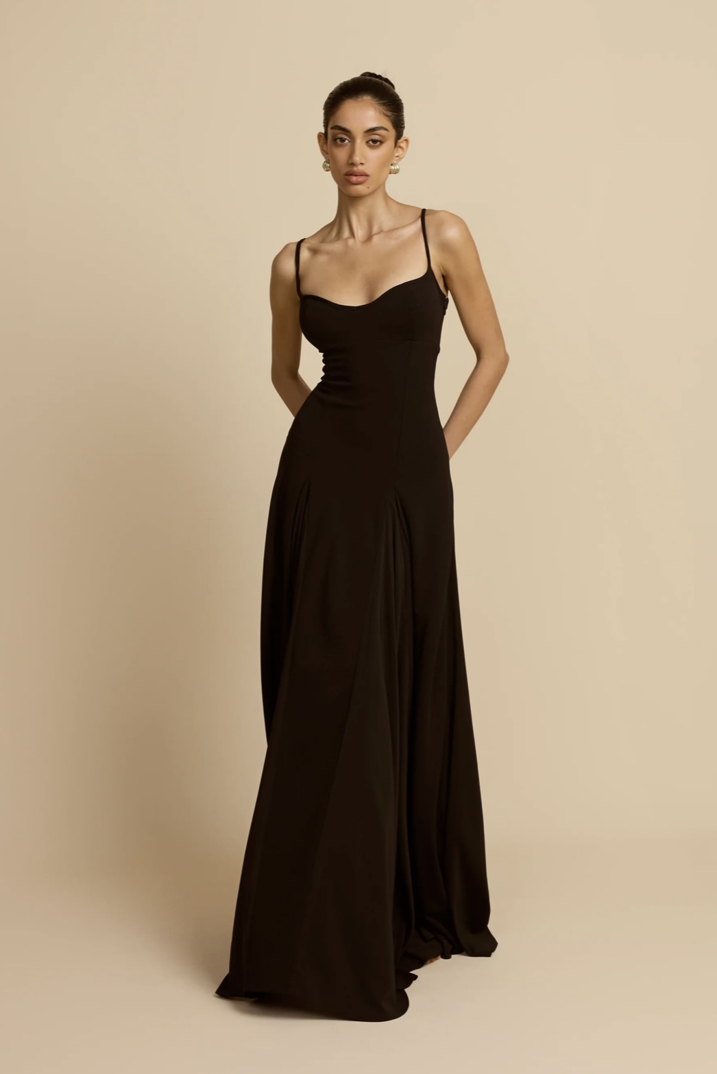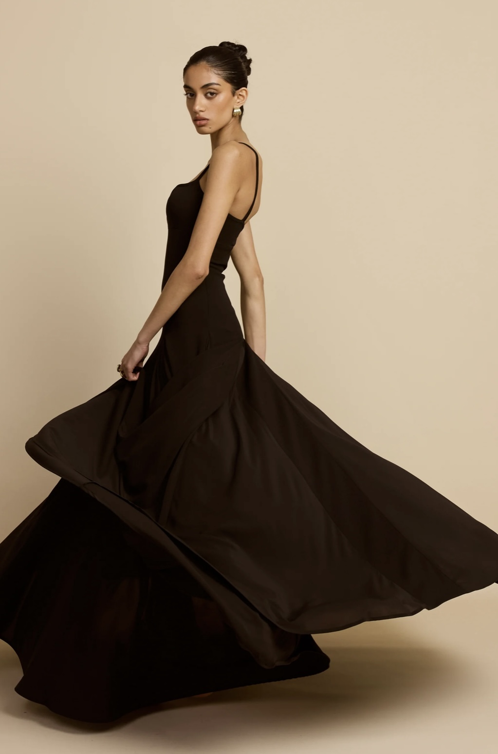Introducing Paloma, a captivating blend of timeless elegance and contemporary flair. Featuring a striking panelled A-line skirt that sits effortlessly off the hips and flaires lightly with a black georgette. Contrasted accents provide captivating fluidity in movement, ensuring a mesmerising presence at any event. Complete with padded bra cups and binded edges for added lift and support. Paloma exudes sophistication from every angle.