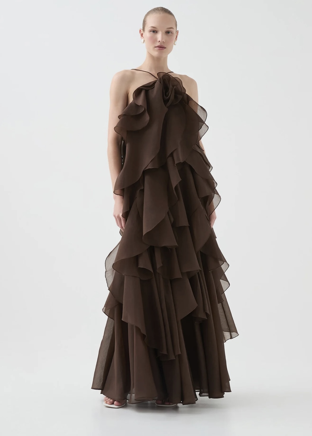 Day based pricing : Pandorea Layered Maxi Dress in Carob Size Small
