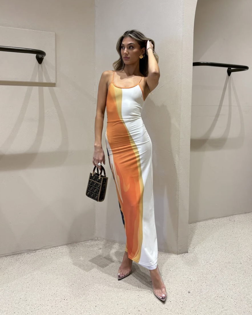 Introducing our exclusive Papaya Mesh Dress, a captivating midi-length masterpiece that effortlessly combines glamour with modern allure.