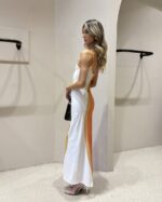 Immerse yourself in the allure of this meticulously crafted dress, designed to make a statement at any event. The midi length strikes the perfect balance between chic and refined, offering a versatile silhouette that flatters every figure. Whether you’re attending a cocktail party, a social soirée, or a special occasion, this dress is destined to turn heads.