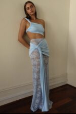 The Paradiso Maxi from our Romantica Volume 1 collection seamlessly combines versatility with elegance. Drawing inspiration from our acclaimed Ortigia style, the Paradiso set is an ideal choice for any event. The combination of shapes, cut-outs and fabric design create the perfect skin-to-fabric ratio. The mini skirt is fully adjustable through the channel for the tail, while the separate maxi skirt allows for customisation, offering a mix-and-match capability to suit various occasions and enhance wearability.