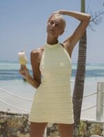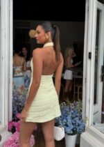 Textured Halter Mini Dress in Lemon