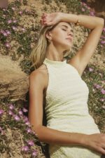 Day based pricing : With harper Lu Textured Halter Mini in Lemon Size Medium