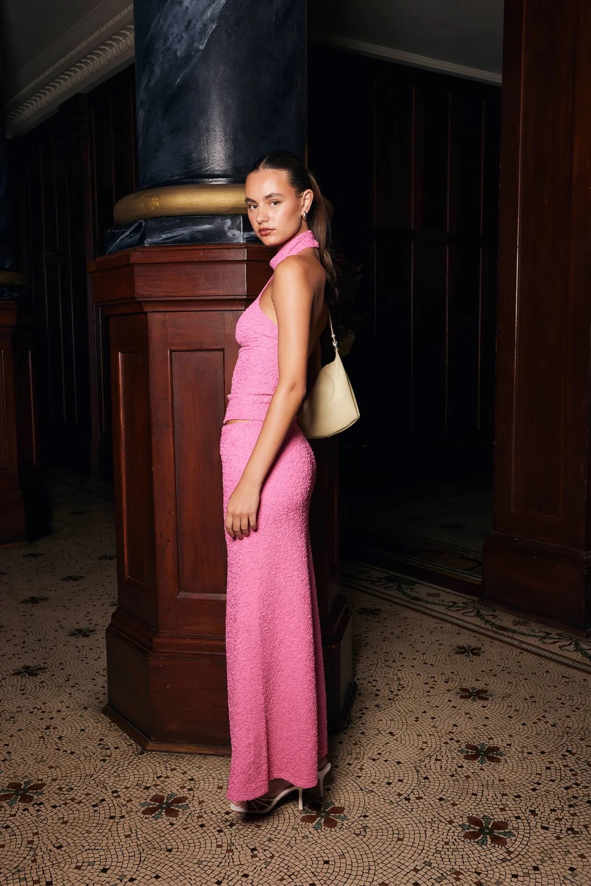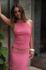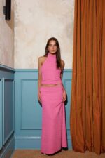 Discover elegance in our Textured Fuchsia Maxi paired perfectly with a matching Halter Top. This ensemble radiates sophistication and style, making it the ideal choice for any occasion.