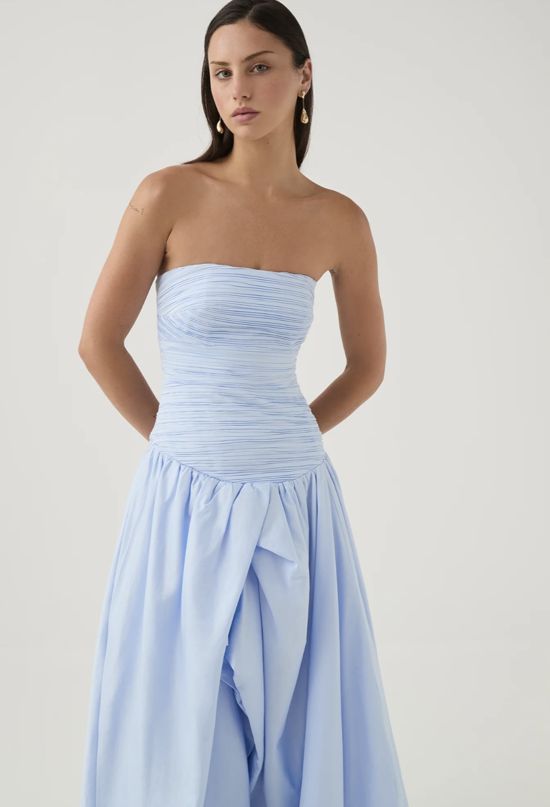 - Women’s strapless gown