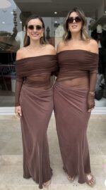 Introducing the Benni Yasmin Off Shoulder Dress in Chocolate.